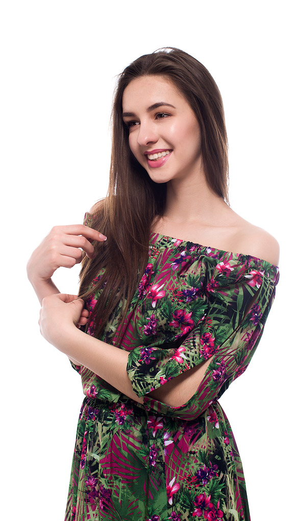 Лёгкая струящаяся ткань. Красивые разрезы на юбке, рукавах, плечи силуэта «крестьянка» на резинке. Расцветки разные