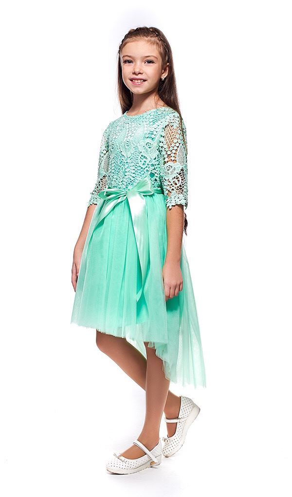 Платье из роскошного кружева макрамэ с воздушной фатиновой юбкой детское.